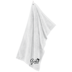 85/15 poly/nylon microfiber Grommeted with silver carabiner Dimensions: 24.25 inches wide x 15.25 inches long Decoration type: Embroidery Made by Port Authority®